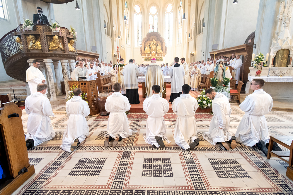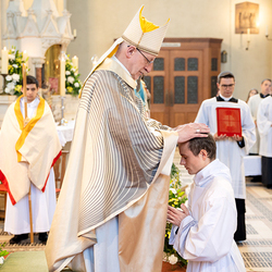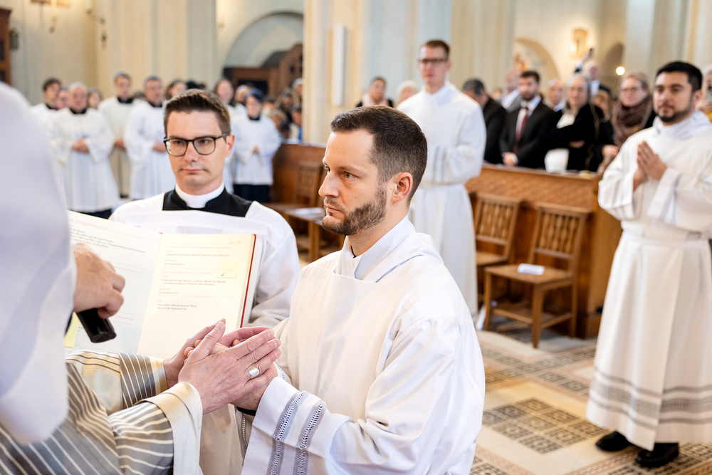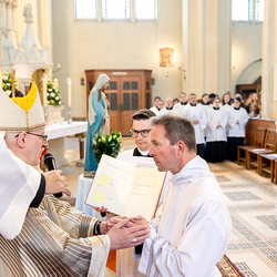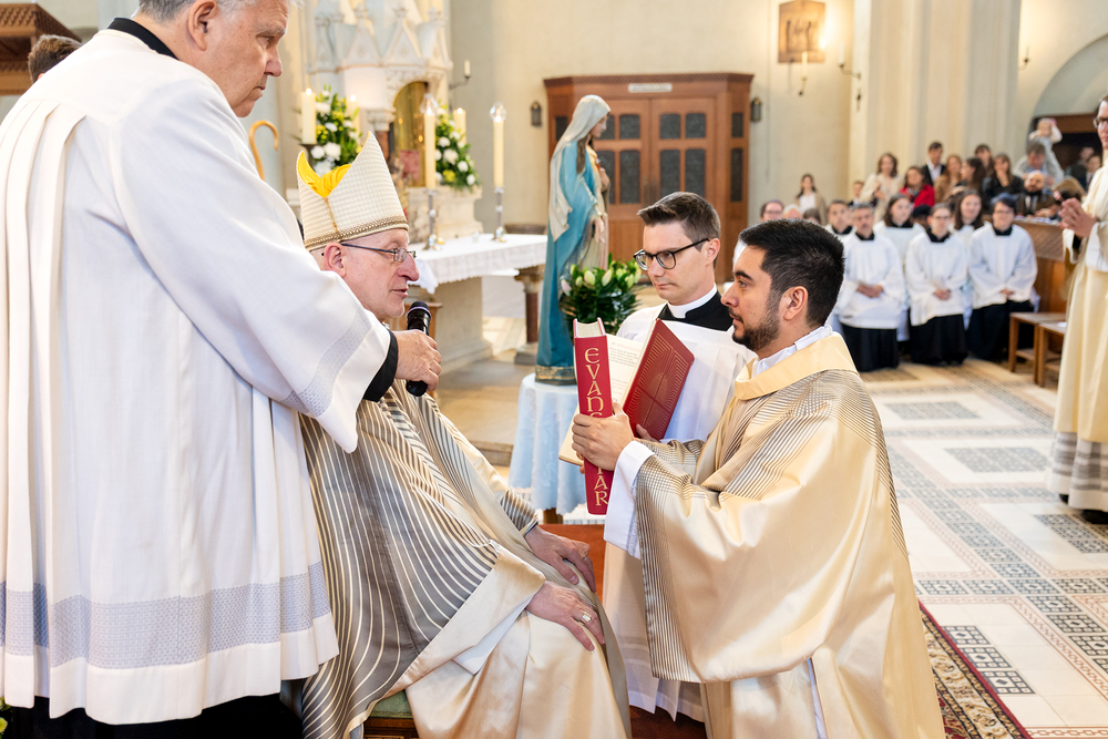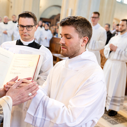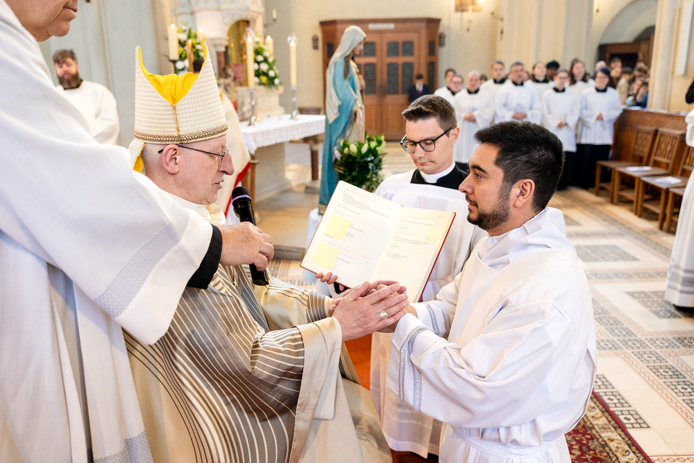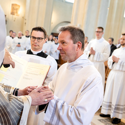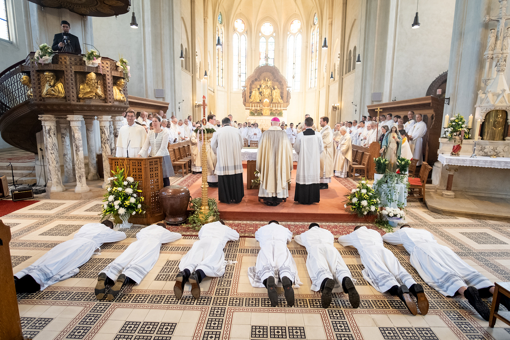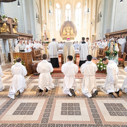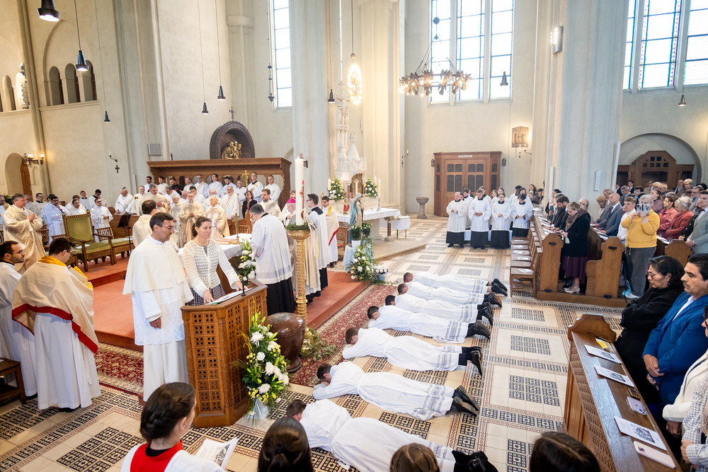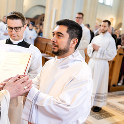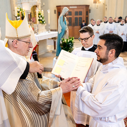 Am 10. Mai weihte Weihbischof Franz Scharl in der Pfarrkirche St. Leopold Donaufeld sieben Männer zu Diakonen für die Erzdiözese Wien. Die Kandidaten kommen aus verschiedenen Gemeinschaften: drei aus dem Wiener Priesterseminar, einer aus dem Benediktinerpriorat St. Josef in Maria Roggendorf und drei aus dem diözesanen Missionskolleg „Redemptoris Mater". Manuel Rennhofer, Joachim Loshehand und Julius Moses Münzer kommen aus dem Wiener Priesterseminar, P. Leo Maria Zehetgruber gehört dem Benediktinerpriorat St. Josef in Maria Roggendorf an drei weitere Kandidaten stammen aus dem diözesanen Missionskolleg „Redemptoris Mater“. Diese Vielfalt unterstreicht die Breite der geistlichen Berufungen in der Erzdiözese. Wir waren mit der Kamera dabei.