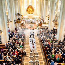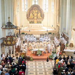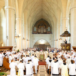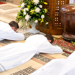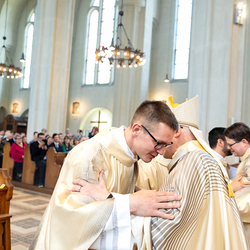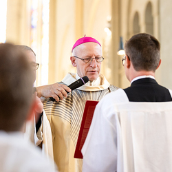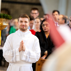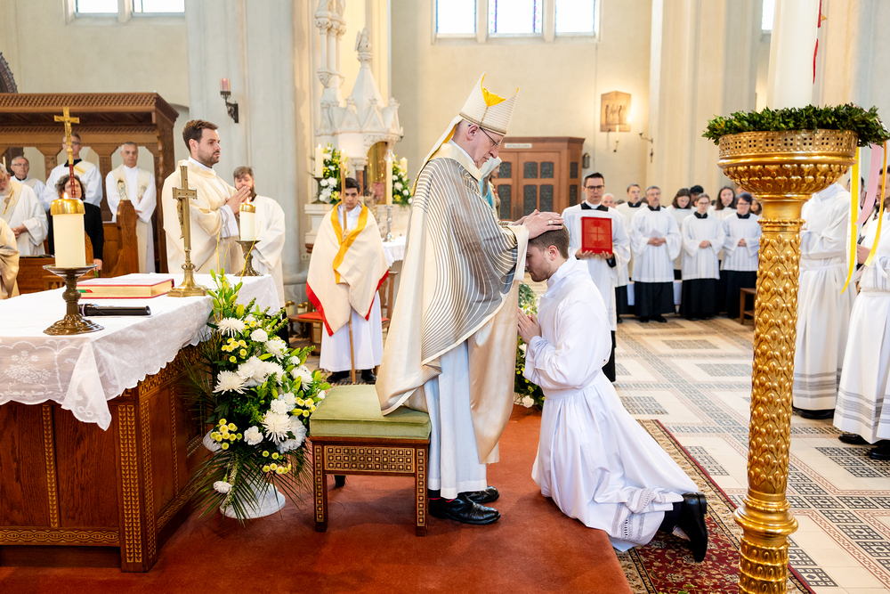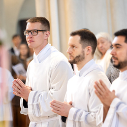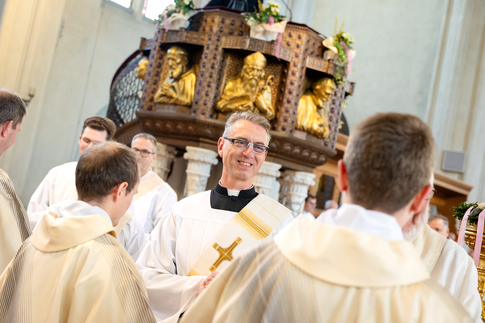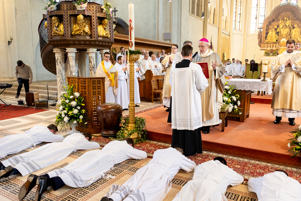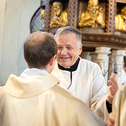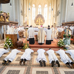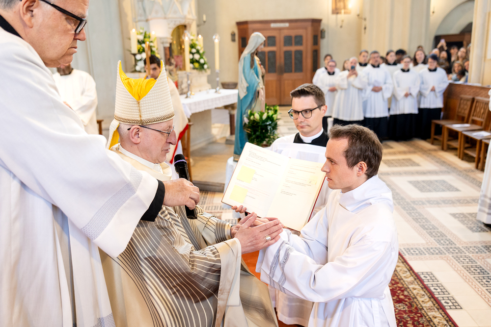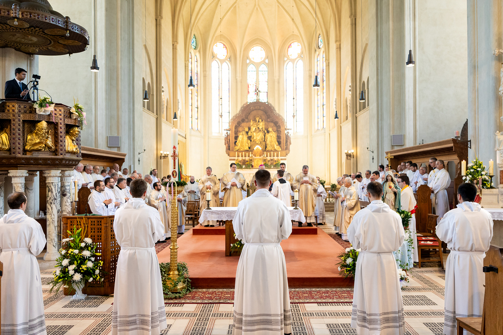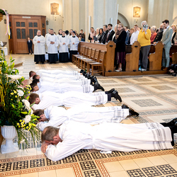 Am 10. Mai weihte Weihbischof Franz Scharl in der Pfarrkirche St. Leopold Donaufeld sieben Männer zu Diakonen für die Erzdiözese Wien. Die Kandidaten kommen aus verschiedenen Gemeinschaften: drei aus dem Wiener Priesterseminar, einer aus dem Benediktinerpriorat St. Josef in Maria Roggendorf und drei aus dem diözesanen Missionskolleg „Redemptoris Mater". Manuel Rennhofer, Joachim Loshehand und Julius Moses Münzer kommen aus dem Wiener Priesterseminar, P. Leo Maria Zehetgruber gehört dem Benediktinerpriorat St. Josef in Maria Roggendorf an drei weitere Kandidaten stammen aus dem diözesanen Missionskolleg „Redemptoris Mater“. Diese Vielfalt unterstreicht die Breite der geistlichen Berufungen in der Erzdiözese. Wir waren mit der Kamera dabei.