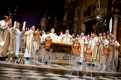 Wiener Erzbischof feierte Chrisammesse im Stephansdom - "Die heiligen Öle wollen uns Gottes Energie schenken, dem Leben Glanz verleihen und Balsam sein für die Seele". Unsere Kamera war dabei.