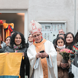 Im Rahmen des Encuentro - Treffen der Plattform Weltkirche feierte die lateinamerikanische Gemeinde gemeinsam mit Bischof Mons. Anibal Nieto Guerra aus der Partnerdiözese der ED Wien, San Jacinto in Ecuador, gemeinsam mit der Wiener Pfarre Akkonplatz die Heilige Messe in der Wiener Kirche St. Florian.